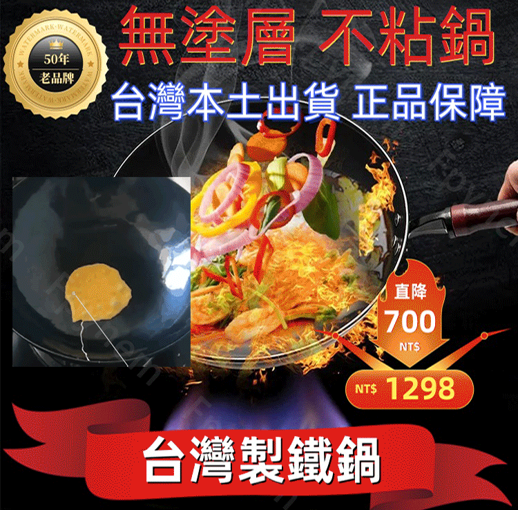【台灣製鐵鍋 正品保障】本土出貨 無塗層鐵鍋 不粘鍋 不生鏽 耐刮耐用 高品質一鍋能用二十年